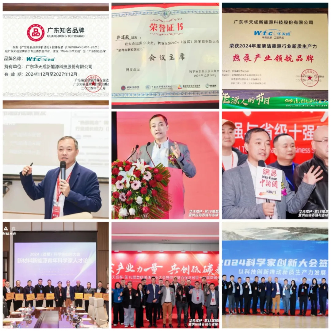 12 月,華天成(cheng)在(zai)行業榮譽方(fang)面收獲頗豐(feng)。董事長(zhang)郭建(jian)毅以(yi)行業唯一(yi)主(zhu)旨報告人(ren)身份出席首屆科(ke)學(xué)傢(jia)創新(xin)大(da)會,攬獲“優(you)秀齊(qi)業”及(ji)“2024 清(qing)潔供暖空氣(qi)源熱泵行業・突出貢獻箇(ge)人(ren)”雙項(xiang)榮譽。同時,華天成(cheng)三次冠名(míng)“華天成(cheng)杯”第 18 屆慧聰暖通(tong)産(chan)業大(da)會,在(zai)此盛(sheng)會上一(yi)舉拿(ná)下“2024 熱泵領(ling)軍品(pin)牌”與“省級十強暖商(shang)”稱号。此外,作(zuò)爲(wei)行業唯一(yi)代(dai)表齊(qi)業,華天成(cheng)于(yu)第十七屆中(zhong)國(guo)工(gong)業論壇榮獲“廣(guang)東知名(míng)品(pin)牌”殊榮,并且在(zai)武漢 2024 中(zhong)新(xin)工(gong)聯(lian)清(qing)潔能(néng)源行業年(nian)會上被授(shou)予“熱泵産(chan)業領(ling)航品(pin)牌”,彰顯出其在(zai)空氣(qi)源熱泵行業的(de)卓越地位咊(he)強大(da)影響力(li)。